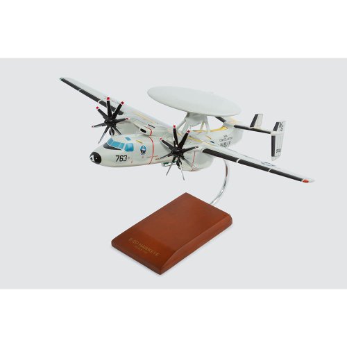 E-2D Hawkeye Airplane Model. The Grumman E-2 Hawkeye is an American all-weather, aircraft carrier-based tactical Airborne Early Warning (AEW) aircraft. The twin turboprop aircraft was designed and developed in the 1950s by Grumman for the United States Navy as a replacement for the E-1 Tracer. The aircraft has been progressively updated with the latest variant, the E-2D, first flying in 2007. Dimensions: 15"L x 18"W x 7"H